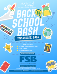 The Back to School Bash & Resource Fair is a community event designed to ensure every child begins the school year with confidence, dignity, and the tools they need to succeed. Each year, Marion Cares brings together local businesses, churches, schools, and volunteers to serve families facing financial challenges. By removing barriers to learning, we help students start the year ready to thrive.